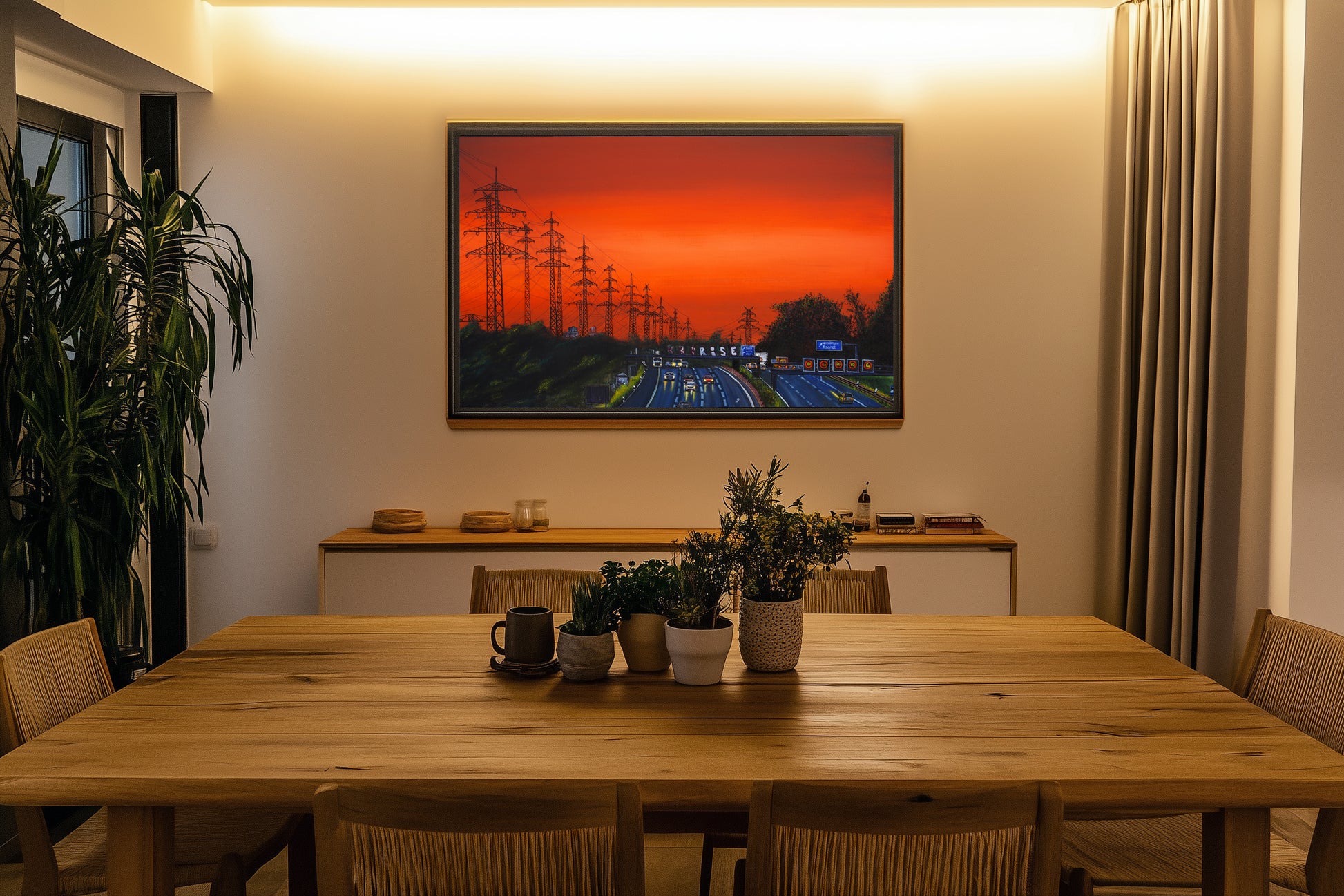 Alle Motive (Öl auf Leinwand) werden nach Fertigstellung hochauflösend eingescannt und anschließend auf Leinwand mit uv-beständigen Farben geplottet. Die fertigen Drucke werden dann auf 2-3 cm dicke Holzleisten gespannt (s. Beispielfoto). Ein Rahmen ist nicht notwendig. Die Seiten sind mitbedruckt. Weitere Größen auf Anfrage über Kontakt.