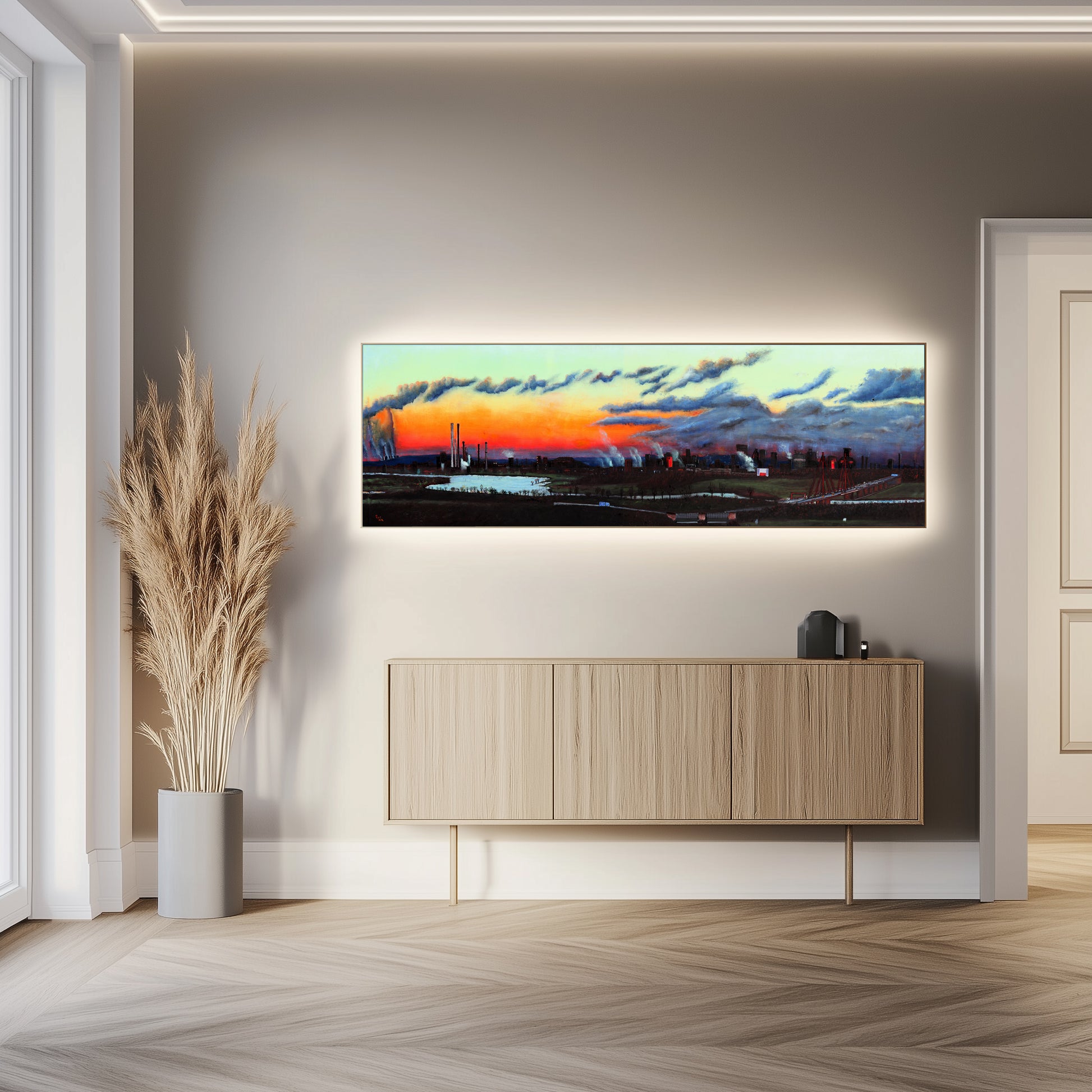 Alle Motive (Öl auf Leinwand) werden nach Fertigstellung hochauflösend eingescannt und anschließend auf Leinwand mit uv-beständigen Farben geplottet. Die fertigen Drucke werden dann auf 2-3 cm dicke Holzleisten gespannt (s. Beispielfoto). Ein Rahmen ist nicht notwendig. Die Seiten sind mitbedruckt. Weitere Größen auf Anfrage über Kontakt.
