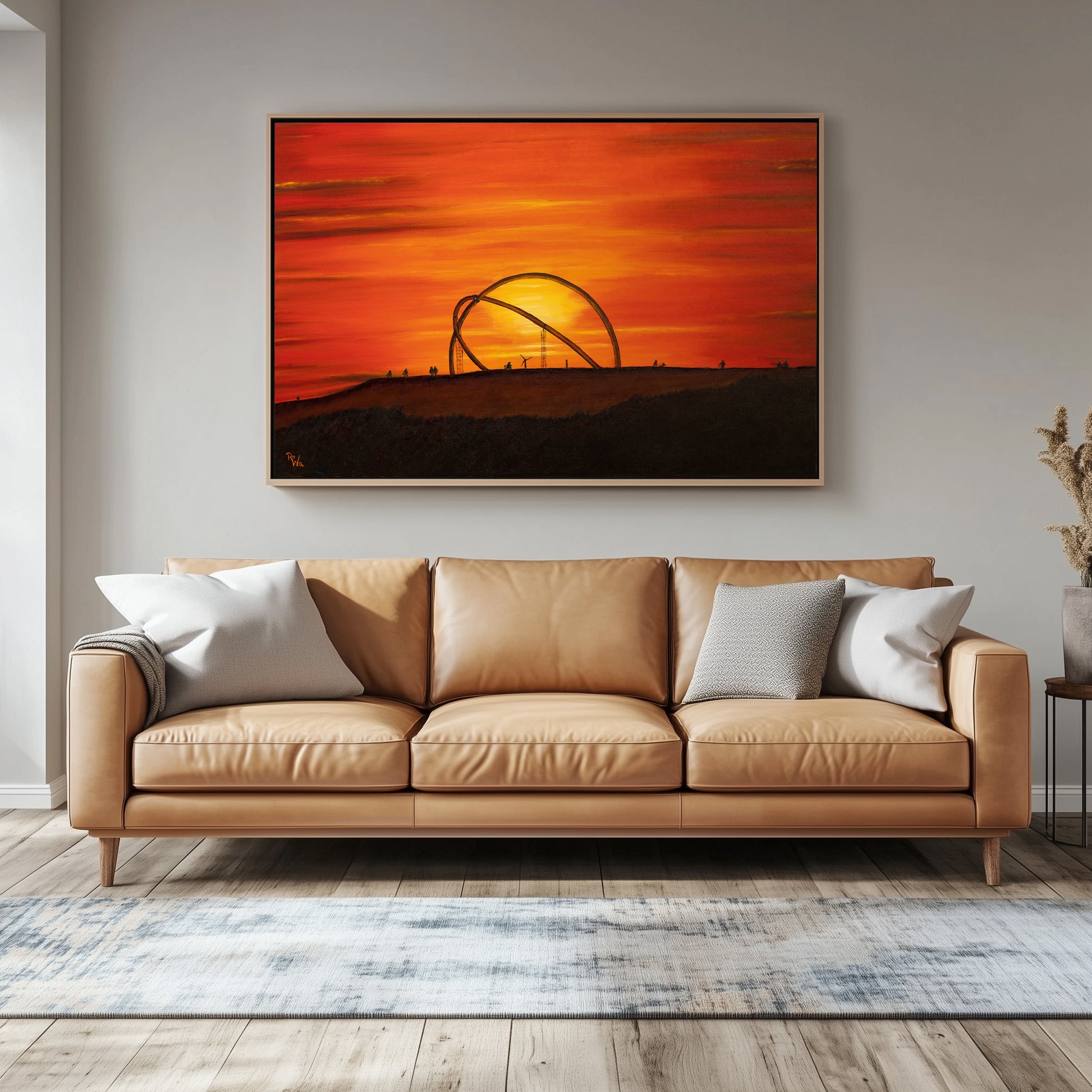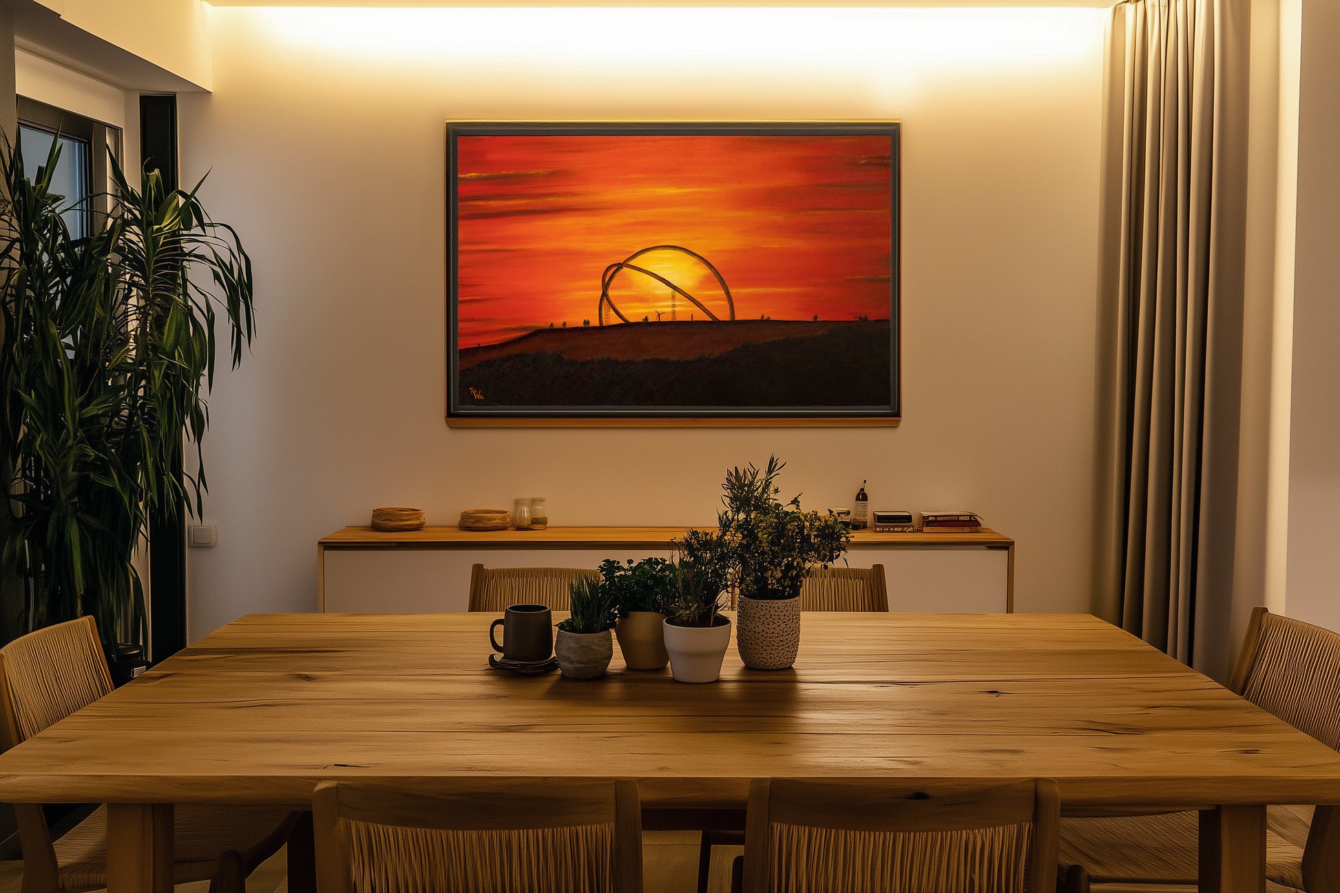Alle Motive (Öl auf Leinwand) werden nach Fertigstellung hochauflösend eingescannt und anschließend auf Leinwand mit uv-beständigen Farben geplottet. Die fertigen Drucke werden dann auf 2-3 cm dicke Holzleisten gespannt (s. Beispielfoto). Ein Rahmen ist nicht notwendig. Die Seiten sind mitbedruckt. Weitere Größen auf Anfrage über Kontakt.