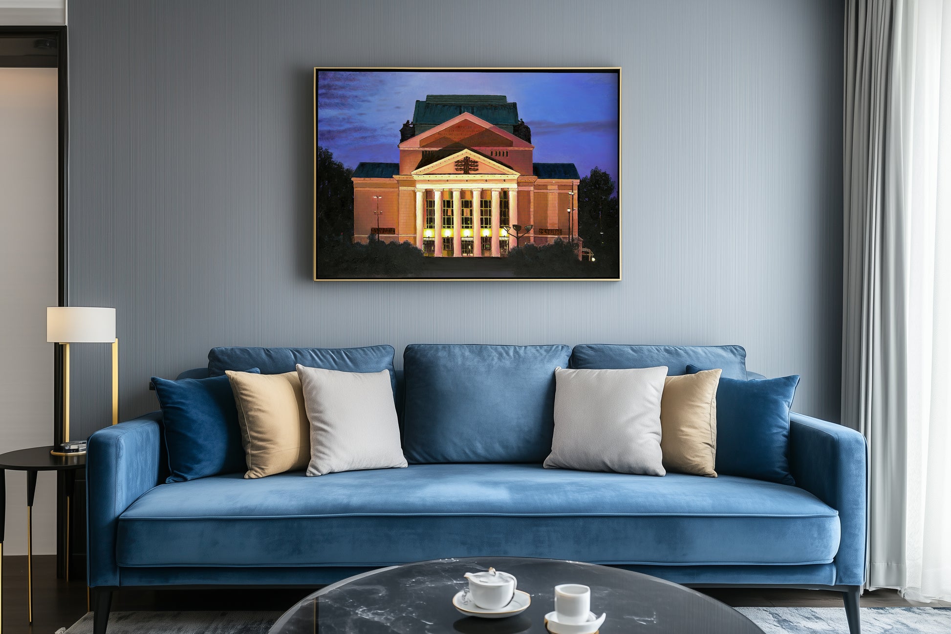 Alle Motive (Öl auf Leinwand) werden nach Fertigstellung hochauflösend eingescannt und anschließend auf Leinwand mit uv-beständigen Farben geplottet. Die fertigen Drucke werden dann auf 2-3 cm dicke Holzleisten gespannt (s. Beispielfoto). Ein Rahmen ist nicht notwendig. Die Seiten sind mitbedruckt. Weitere Größen auf Anfrage über Kontakt.